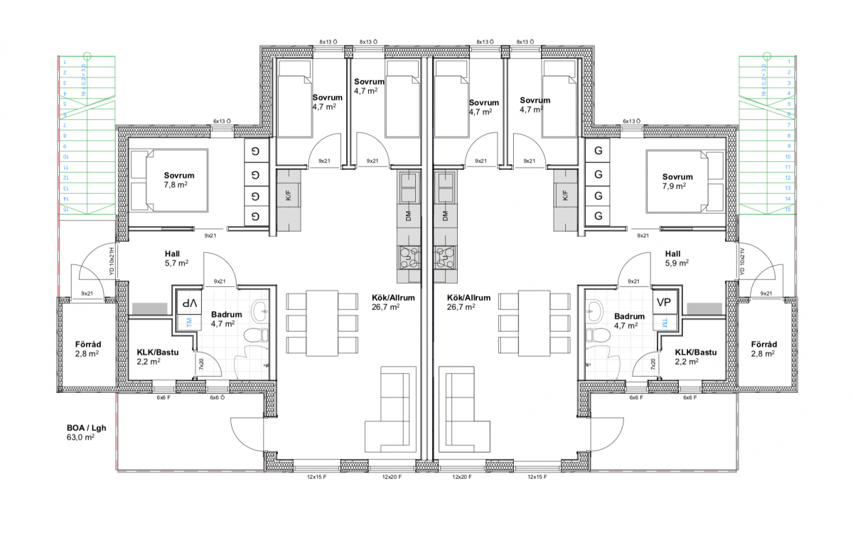 The house model that is tailor-made for the customer is Highlands LGH and the apartments can be selected in two designs. The default option is the 4th and the option is the 3rd - by merging two bedrooms into one.